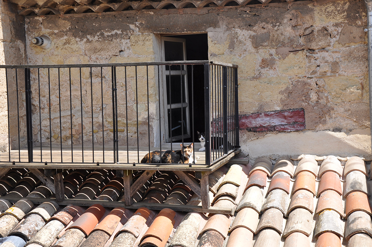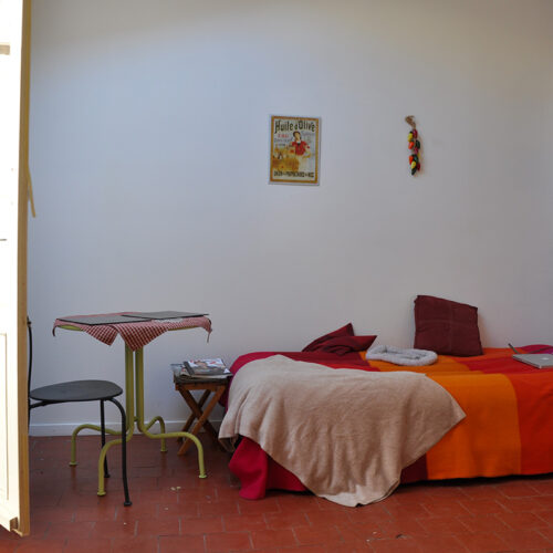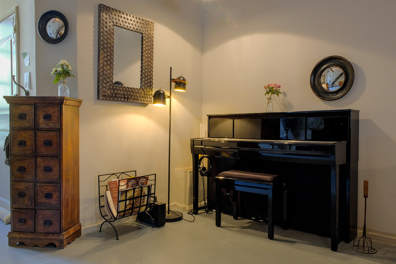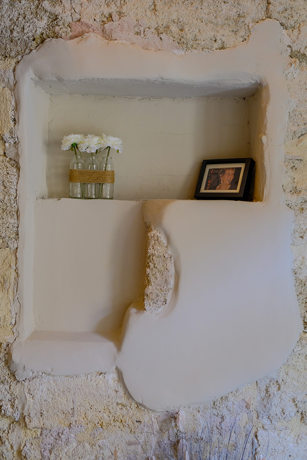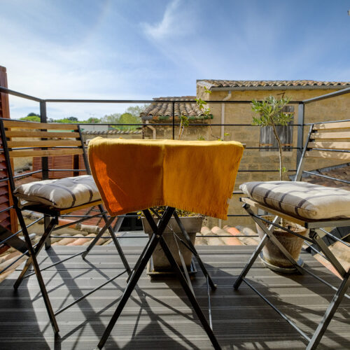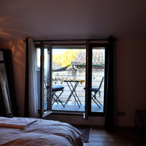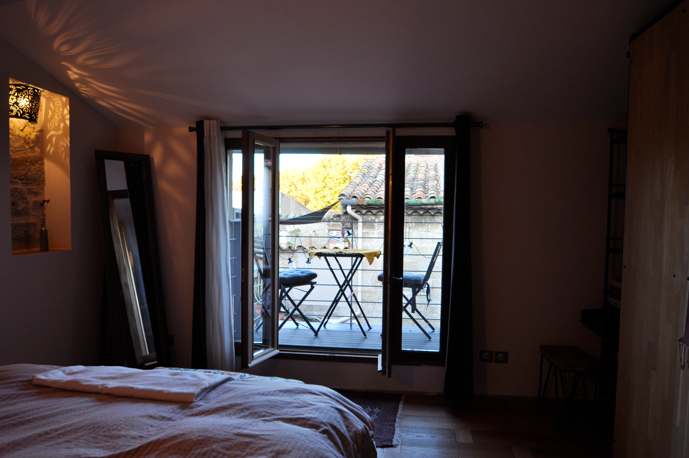At the foot of the bed, the former tiny door onto a rickety balcony of sorts is now replaced by a massive folding window and door frame onto a new and much needed reinforced breakfast balcony looking out onto the main terrace. The evening sun shines directly onto this private balcony and casts a beautiful sunset glow onto the floor. Too hot to dine in the summer, too cold in the winter, so we dash for the in-between season when it’s just right!