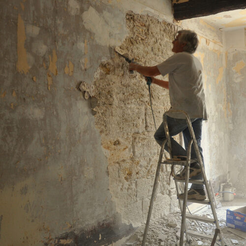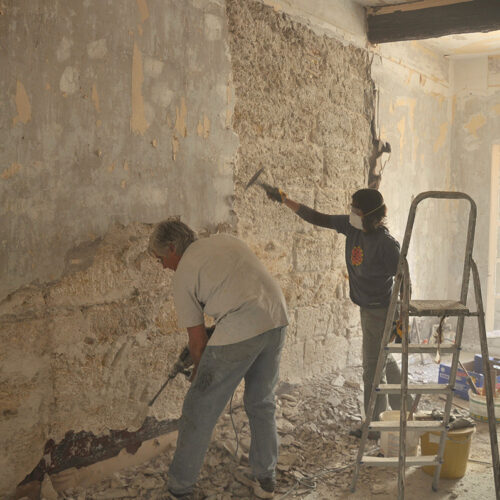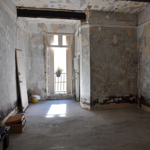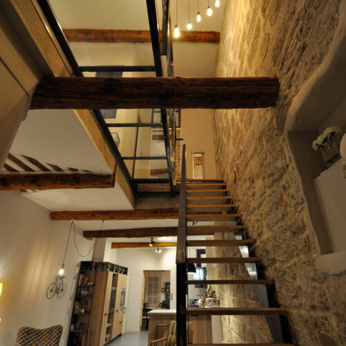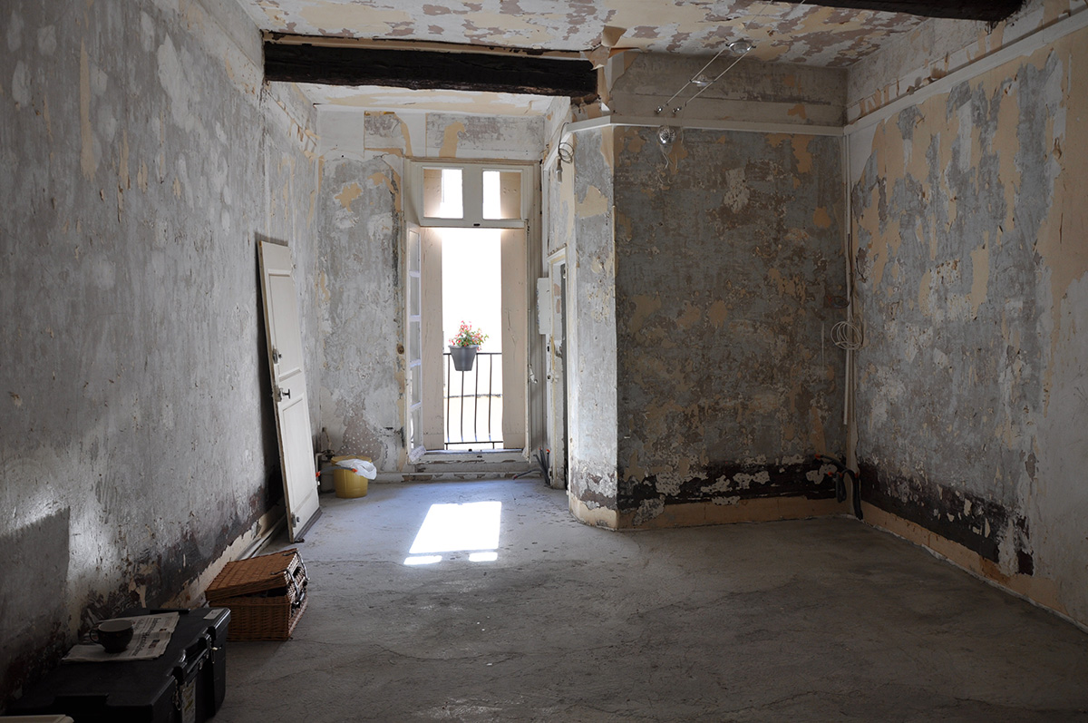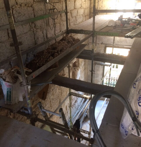 Once the rental accommodation renovations were completed, we moved the team upstairs to attack the upper floors. For this we had to turn to our Architect friend Anne to lead the expanded team of artisans. With Anne’s genius idea of installing a new inner staircase, we could provide a stunning and first-time access from the second floor to the old unused attic floor above. Check out the amazing before & after pix as this project took shape…
